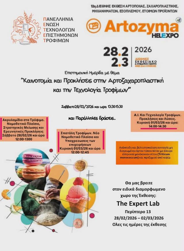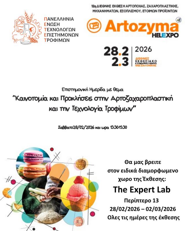 H ΠΕΤΕΤ συμμετέχει δυναμικά στην έκθεση ARTOZYMA, διοργανώνοντας ημερίδα και παράλληλες δράσεις με επίκεντρο τις σύγχρονες προκλήσεις στον κλάδο των τροφίμων.